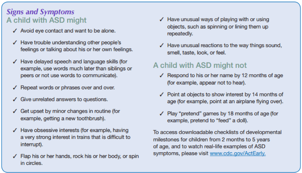 According HHS.gov: “ASD is a developmental disability characterized, in varying degrees, by persistent difficulties in social communication and restrictive and repetitive behaviors, interests, or activities. We know that early screening and intervention at younger ages helps children get the most effective treatments earlier in life. Yet the CDC found that most children with autism are diagnosed after age 4, even though autism can be diagnosed as early as age 2.”