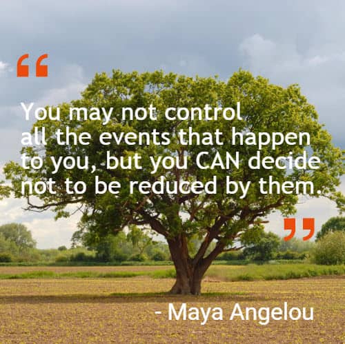 “You may not control all the events that happen to you, but you can decide not to be reduced by them” ~ Maya Angelou
