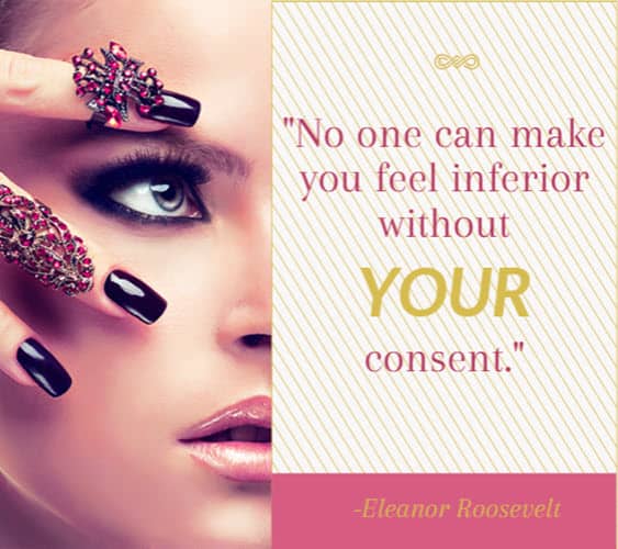 “No one can make you feel inferior without your consent.” ~ Eleanor Roosevelt