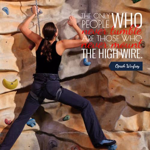 “The only people who never tumble are those who never mount the highwire.” ~ Oprah