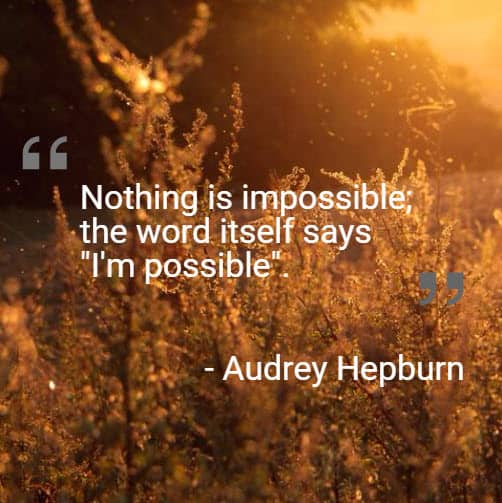 “Nothing is impossible; the word itself says ‘I’m possible’” ~ Audrey Hepburn