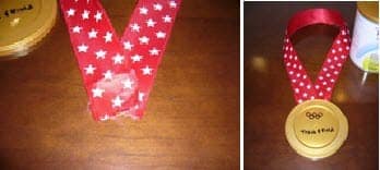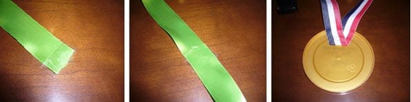 You could even staple and tape the ribbon ends directly to the back of the Neocate gold medal, like this one that I made for Track and Field here.