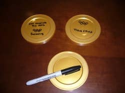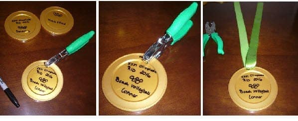 I looked to the actual 2016 Rio Olympic and Paralympic medals for my decorating inspiration. I included the Olympic rings (or as close as I could replicate them when using my poor drawing skills and blunt permanent marker) and my favorite sporting events. I included the numerical name for these upcoming Olympics of XXXI Olympiad as well.