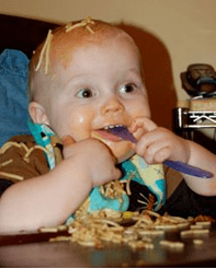 For many families, a change in weight may require a small change in diet, or maybe none at all. Perhaps some diet changes will help your little one eat more in general, or maybe to eat more calories within the items they do already eat. Maybe your family just needs a little help guiding your child to get some food into their mouth instead of on their head like this little guy here.